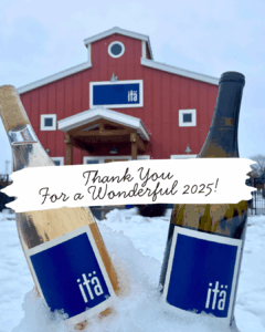 Thank you all for an incredible 2025 – to say that it was eventful is an understatement, and we couldn’t have made it through without your support. The year brought the arrival of the newest Itämeri, our son Basil, aka “Juicy” (so named by his older sister, August), the release of our new cabernet franc, the very first itä t-shirts, and wonderful moments shared with you – here at the winery, over email, and on social media.